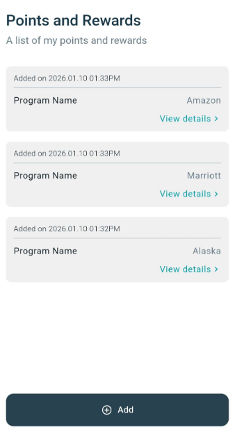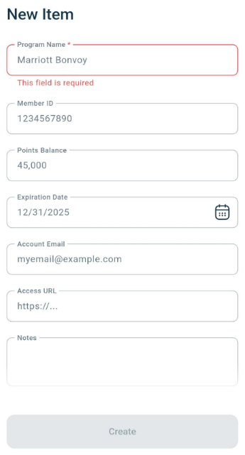 The Points and Rewards binder in Contingency Zero is designed to keep all of your loyalty programs, airline miles, hotel points, and store rewards in one organized list instead of scattered across emails and apps. Each entry lets you record the program name, your member ID, current points balance, expiration date, and the email and URL associated with that account. When everything is collected in one place, it becomes much easier for you—or a trusted contact—to see what you have, where it lives, and which accounts might need attention before points expire.